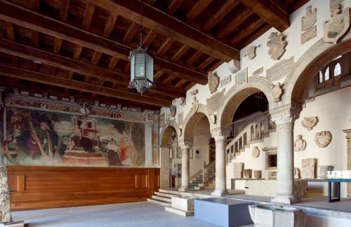 L’atrio d’ingresso del museo è dominato dagli affreschi con "Il Leone di San Marco tra la Giustizia e la Temperanza" e "La Madonna col Bambino in trono tra Sant’Andrea, Sant’Augusta e il committente Girolamo Zane".